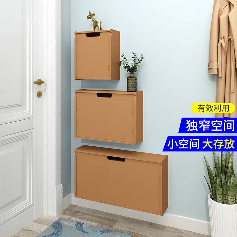 浅色咖啡色壁挂式翻斗门口简易鞋架免打孔卫生间收纳架省空间小窄
