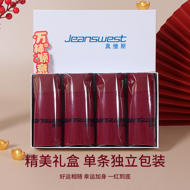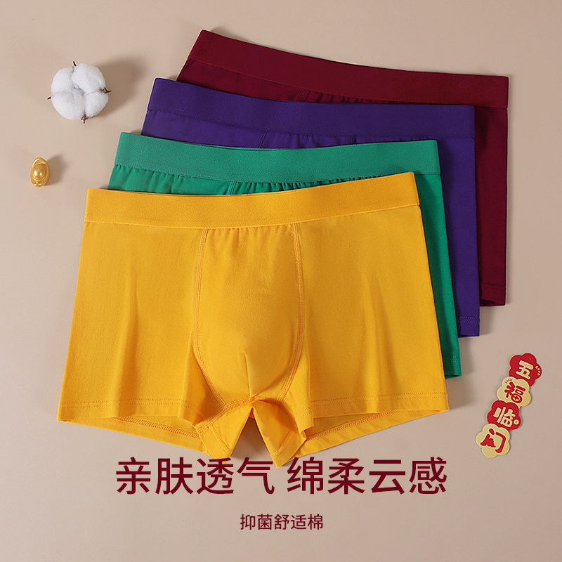 真维斯抗菌男士内裤本命年酒红色纯棉平角裤2026新款属马男款短裤