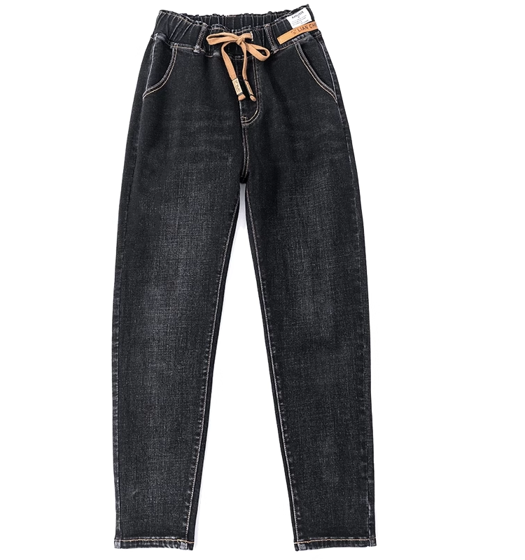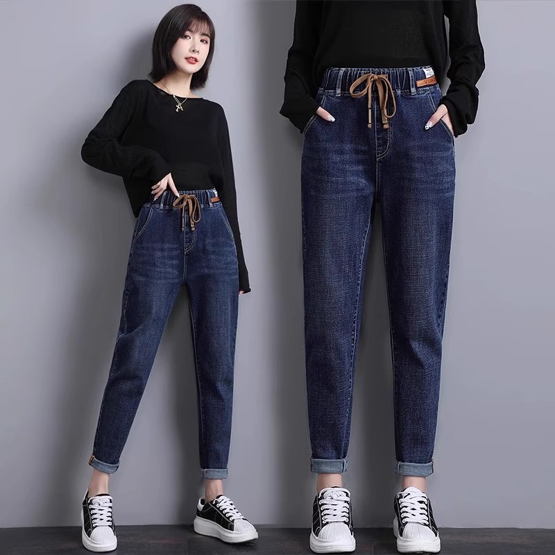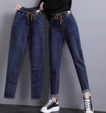 松紧腰牛仔裤女2025年新款春秋季宽松大码胖MM高腰萝卜老爹哈伦裤