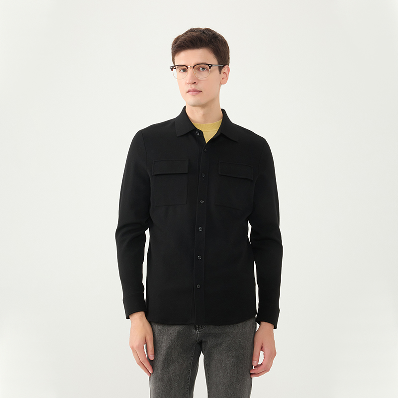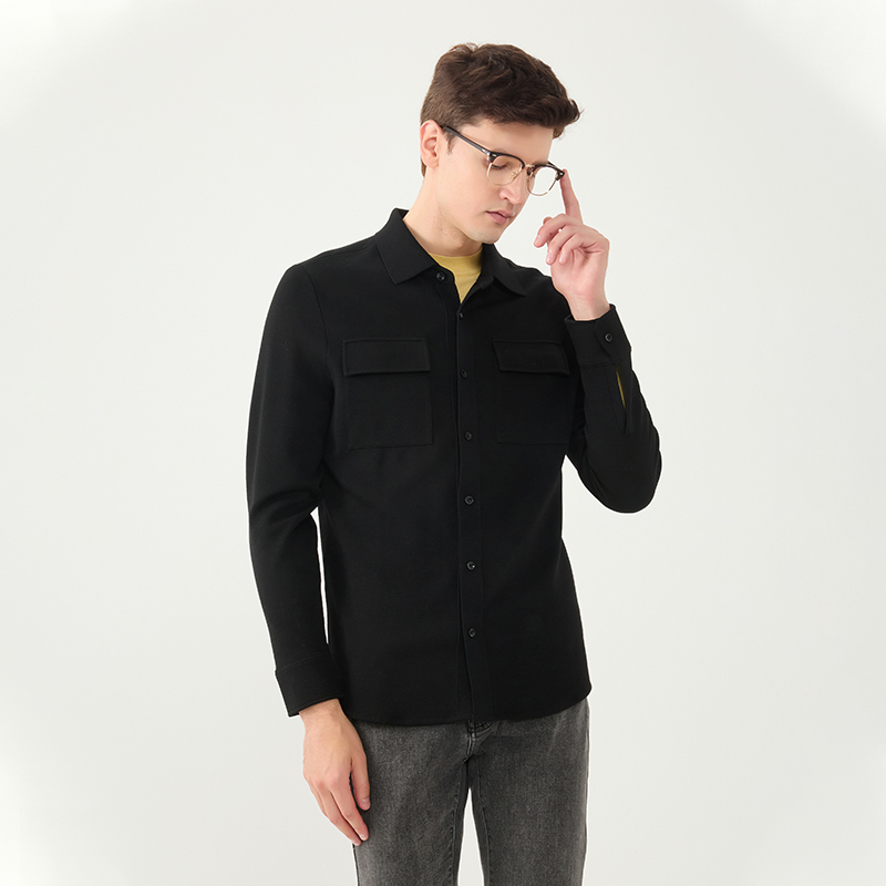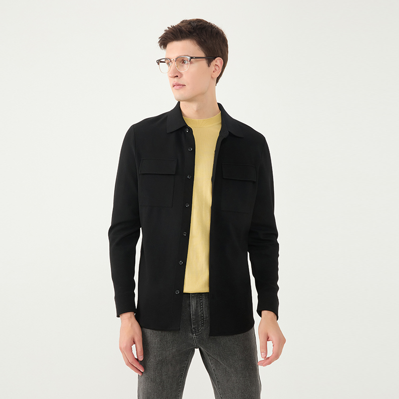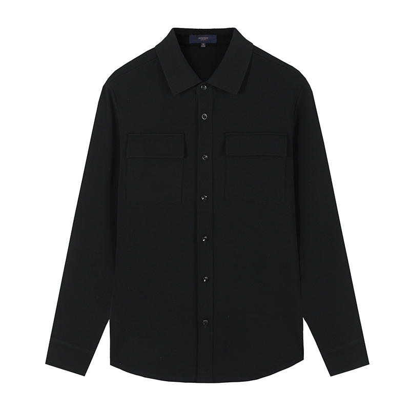 【55%羊毛】DIDIBOY秋季翻领针织毛衫黑色开衫休闲衬衫式薄外套男