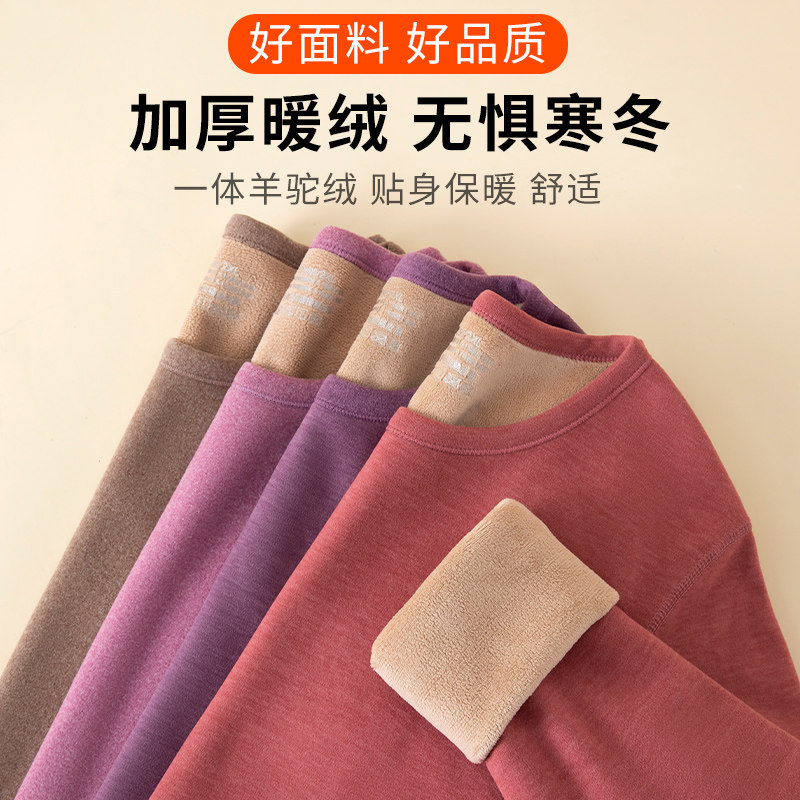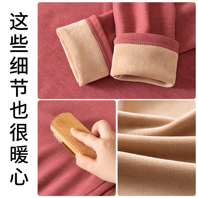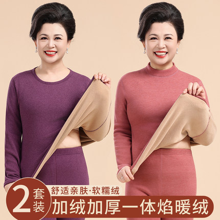 德绒发热保暖内衣女士加绒加厚套装中老年人妈妈半高领秋衣秋裤冬