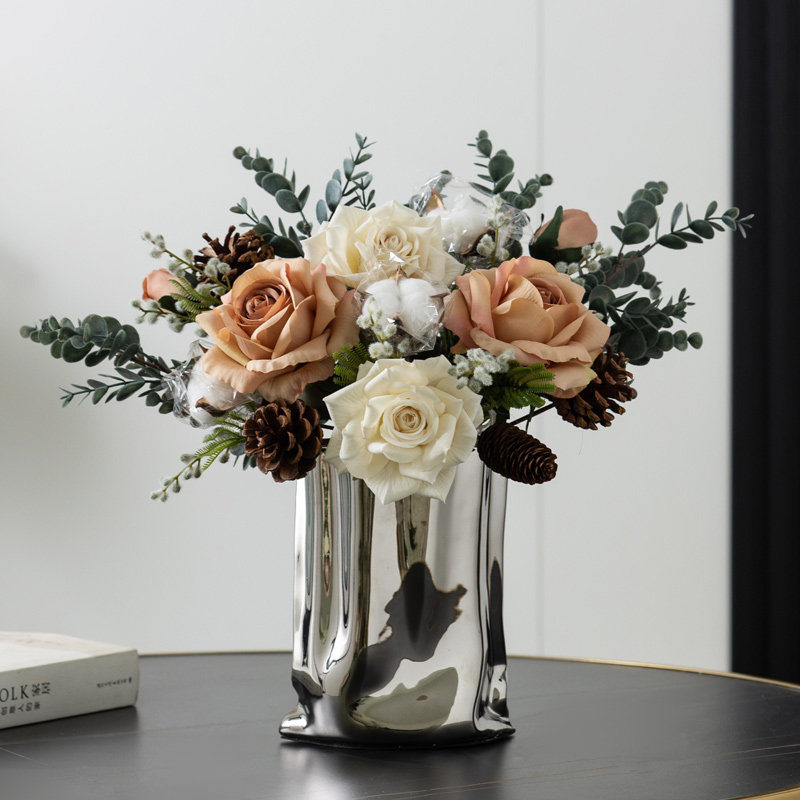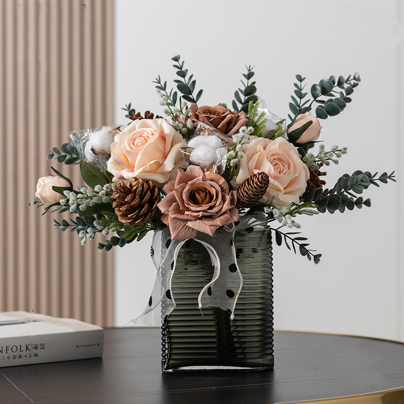 仿真花干花花束玻璃花瓶客厅装饰摆设件北欧玫瑰假花餐桌上电视柜