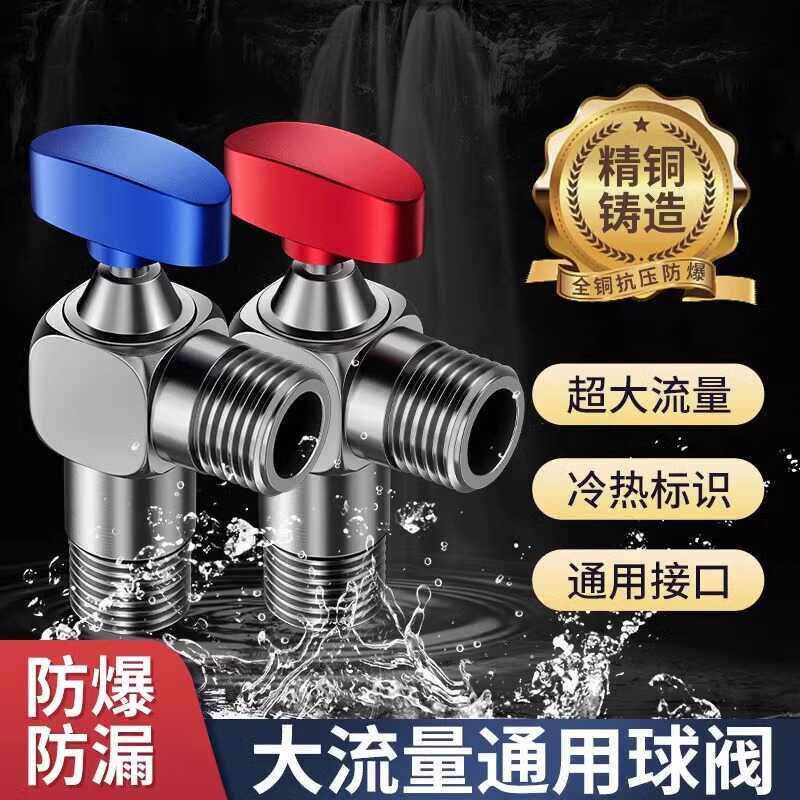全铜球芯阀全开大流量角阀冷热水热水器4分三角阀球阀开关