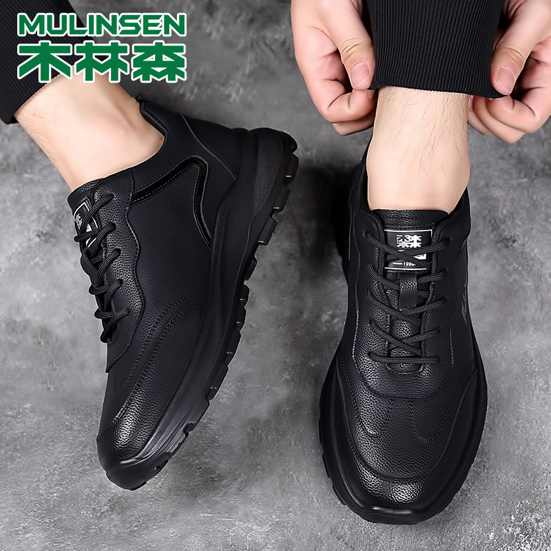 木林森男鞋防水皮面运动皮鞋男士真皮软底跑步鞋男轻便透气休闲鞋