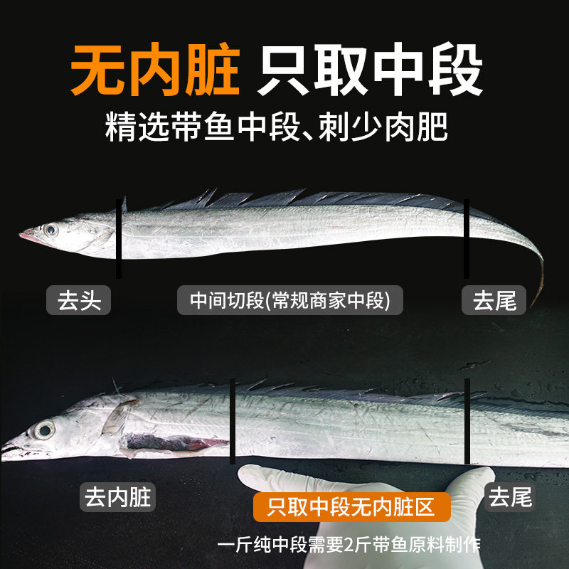 海鼎纪 舟山海捕小眼带鱼鲜冻去头尾无内脏纯中段袋装500g/袋*4袋