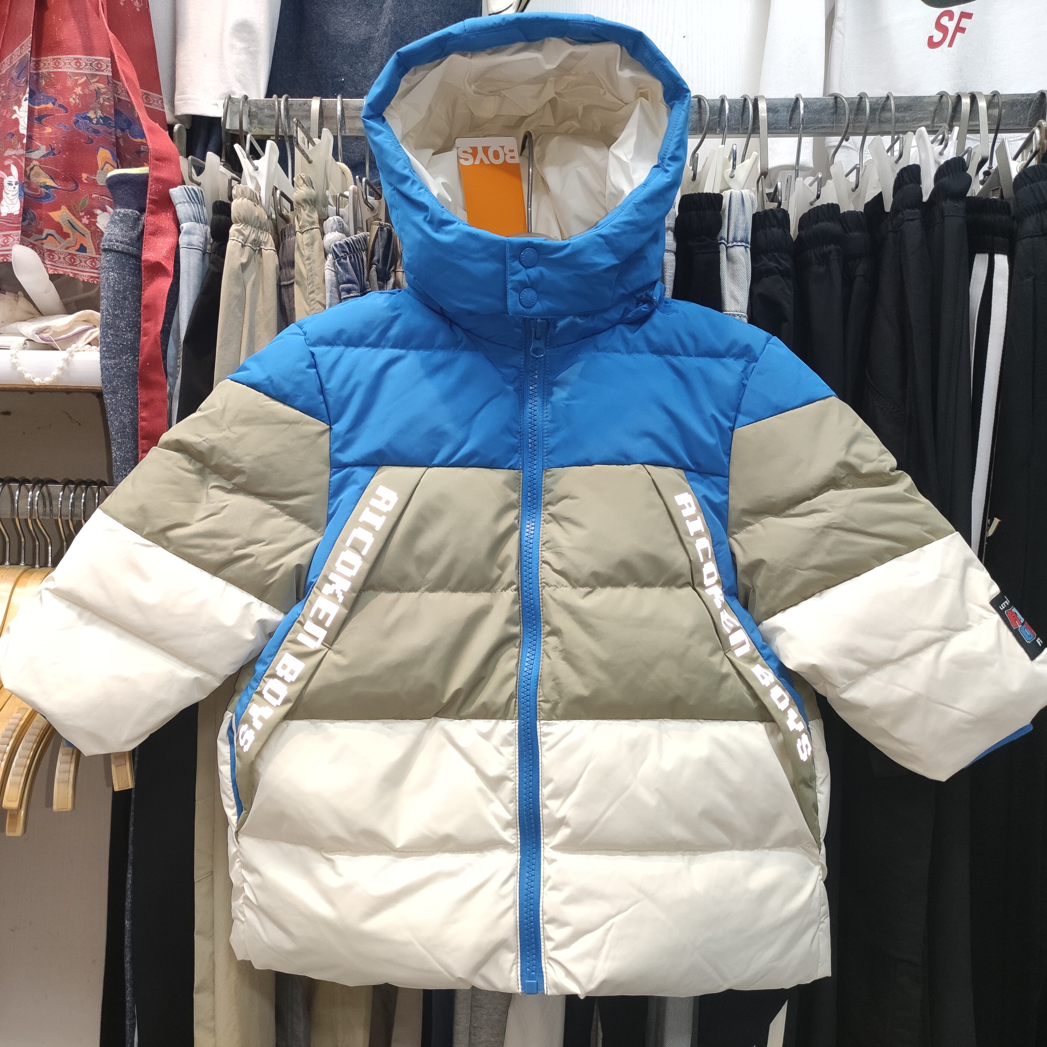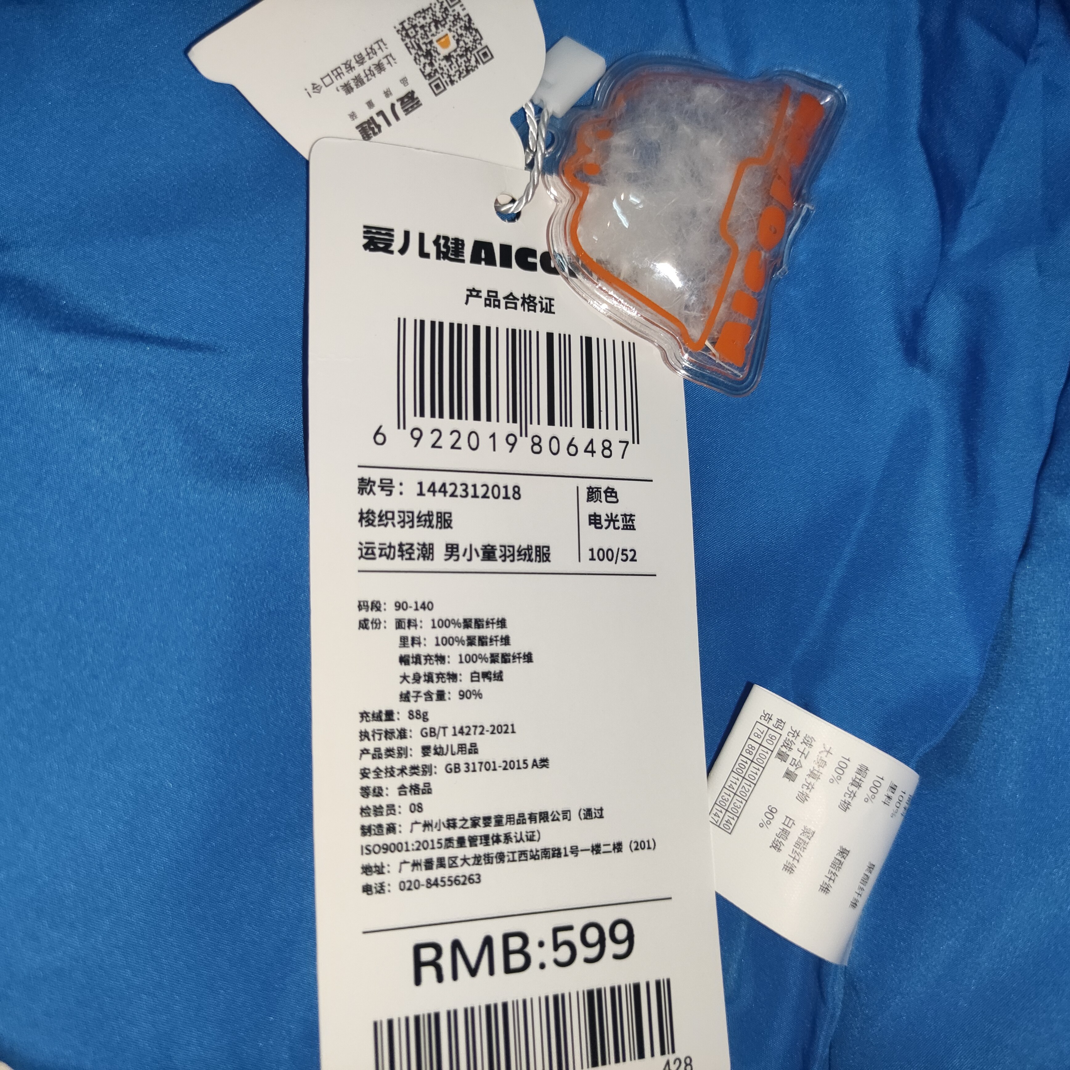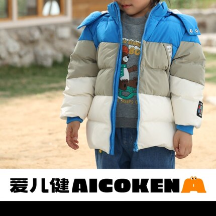 4.9折1爱儿健童装爱儿健1442312018男童冬有帽开胸拉链羽绒服外套