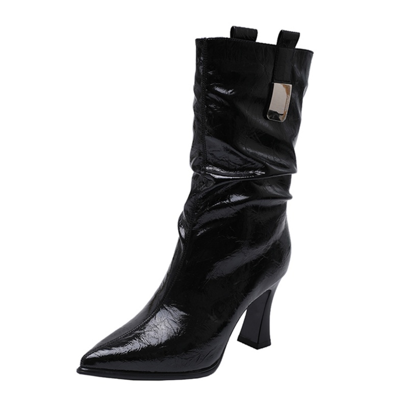 法式时装靴尖头高跟短靴女2025秋冬新款百搭堆堆靴气质粗跟瘦瘦靴