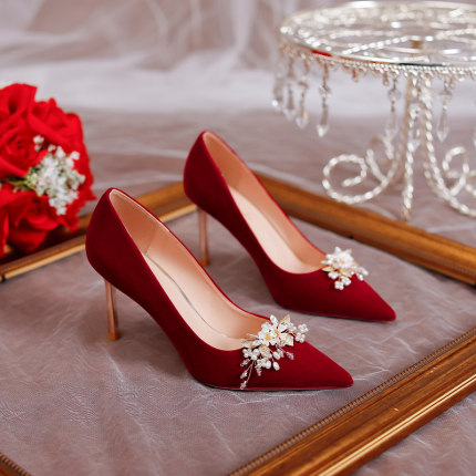 红色不累脚婚礼婚鞋女夏季秀禾婚纱两穿2025年新款高跟新娘鞋法式