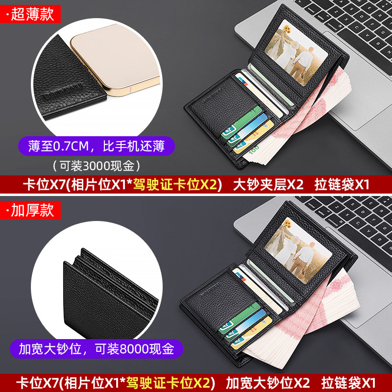头层牛皮高端钱包男士短款真皮皮夹子竖款2026商务潮拉链钱夹超薄