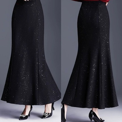 新款香风2025亮丝半身裙显瘦气质时尚中长款松紧高腰一步鱼尾裙子