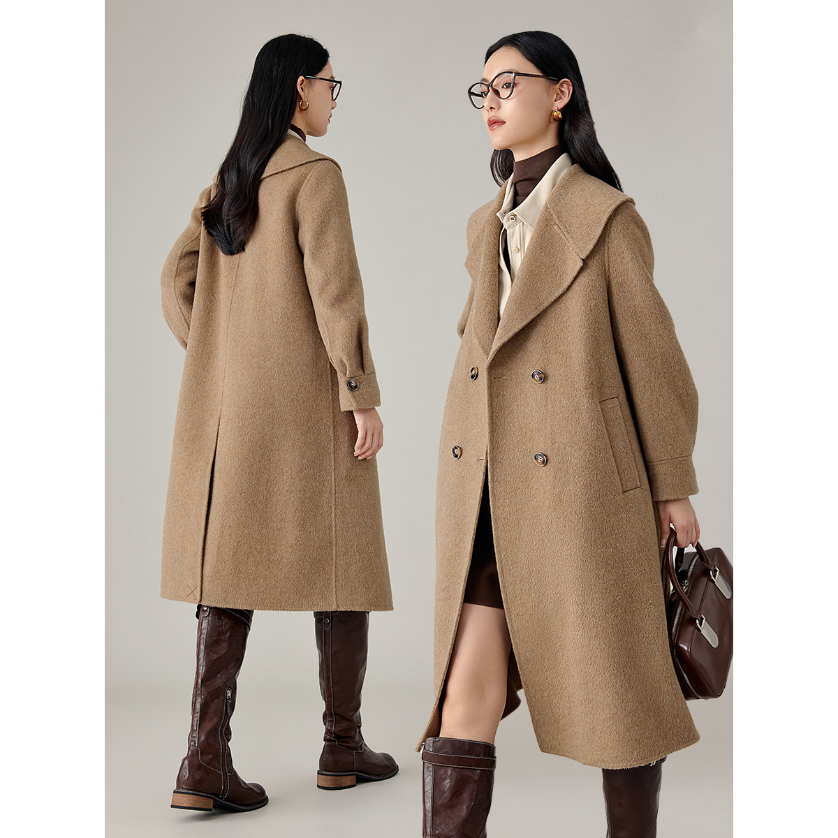 衣香丽影真丝羊毛大衣女2025年冬季新款高级感骆驼绒双面呢子外套