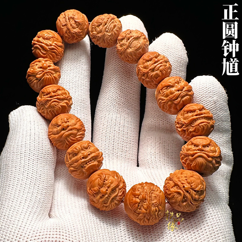 正圆大钟馗猴头核桃手串