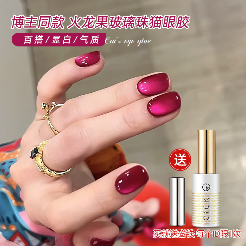 网红爆款火龙果猫眼胶2025新款巨显白玻璃珠猫眼甲油胶美甲店专用