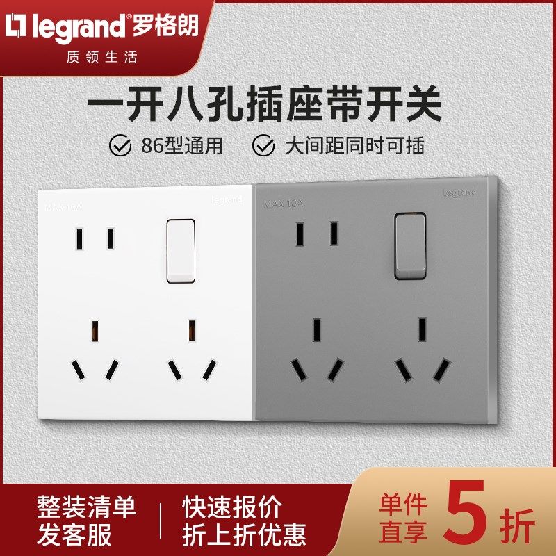 罗格朗开关插座墙壁白色七孔十孔101一体面板带开关8型插面板