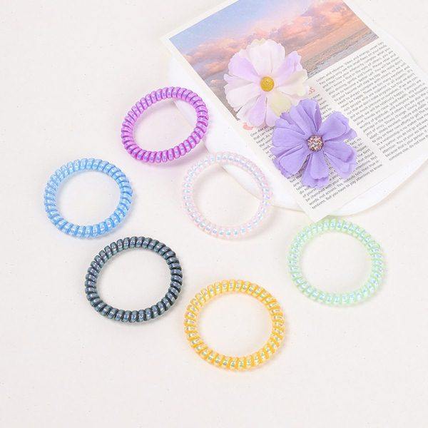 100个装人鱼姬珠光色电话线发圈扎头发橡皮筋可爱发绳炫彩电话线
