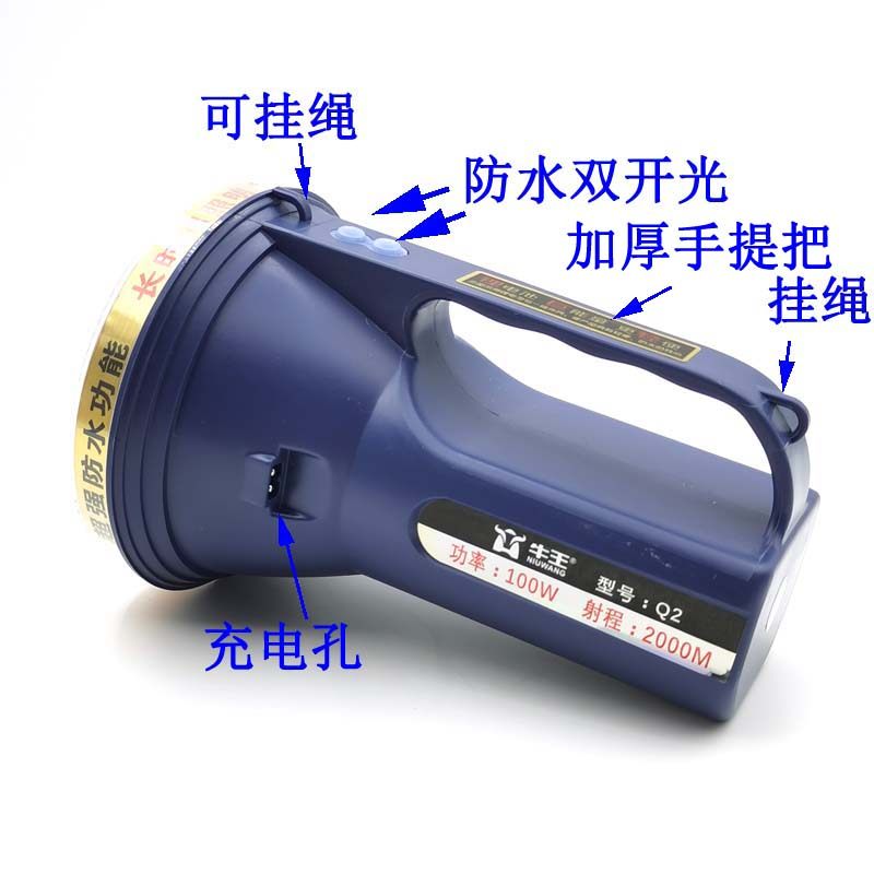 牛王q2探照灯充电手提灯防水灯锂电池超亮100w户外强光手电筒头灯
