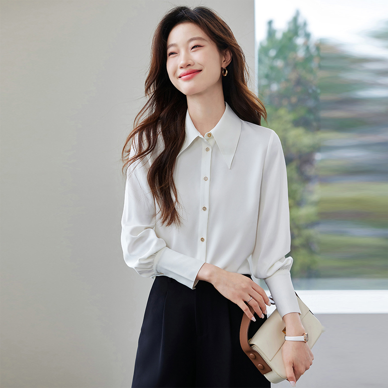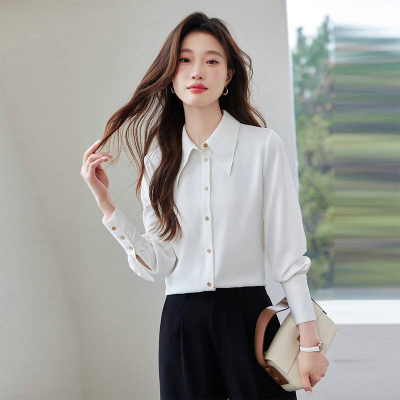 白色衬衫女长袖2025秋装新款高级感职业通勤上衣气质上衣开衫衬衣