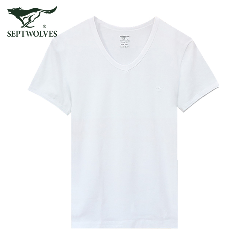 七匹狼t恤男短袖背心纯棉V领打底衫鸡心领透气汗衫夏全棉弹力修身
