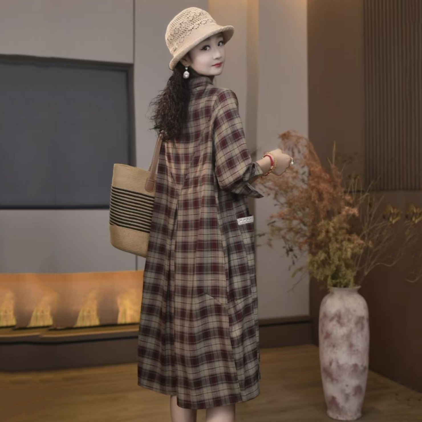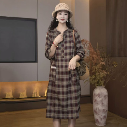 826-2583格子显瘦长袖秋季拼接连衣裙休闲风宽松版型