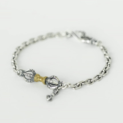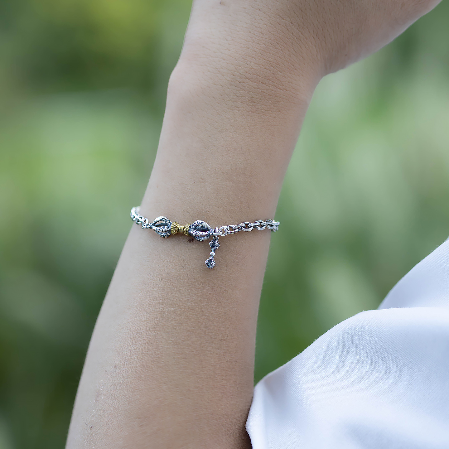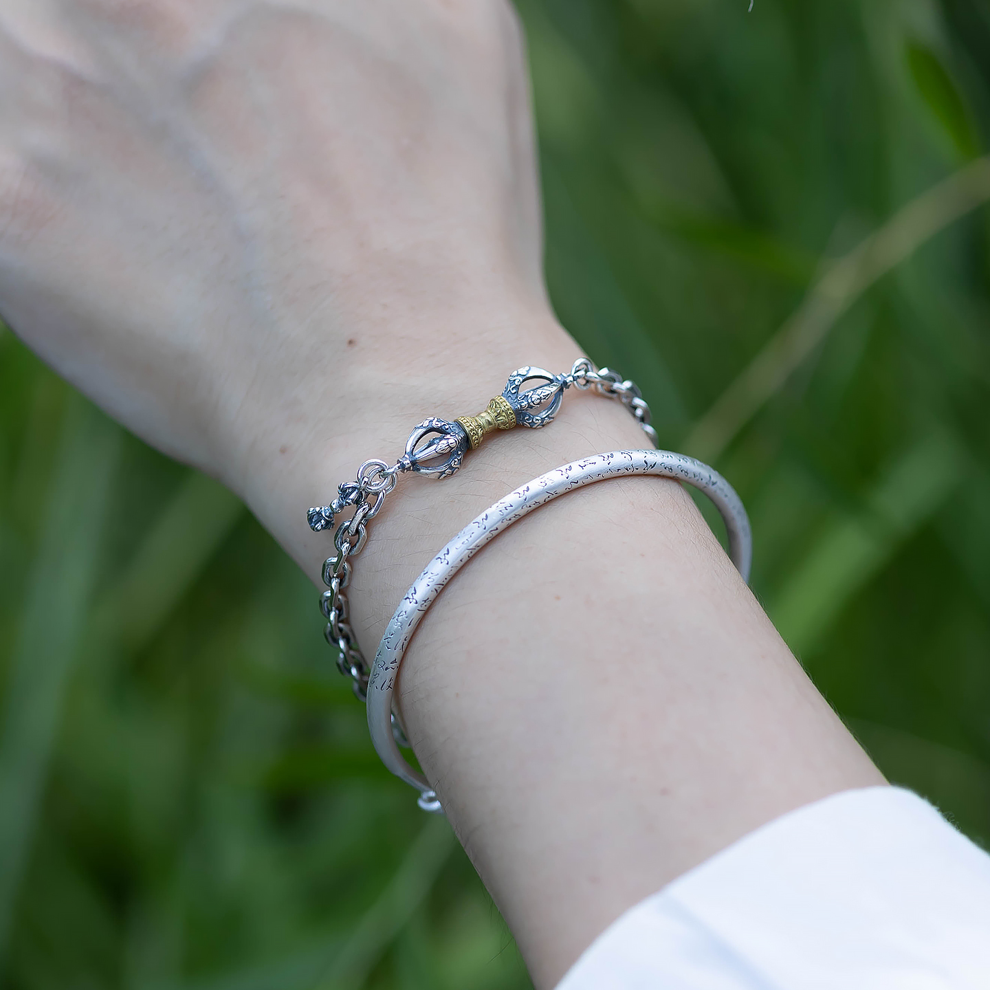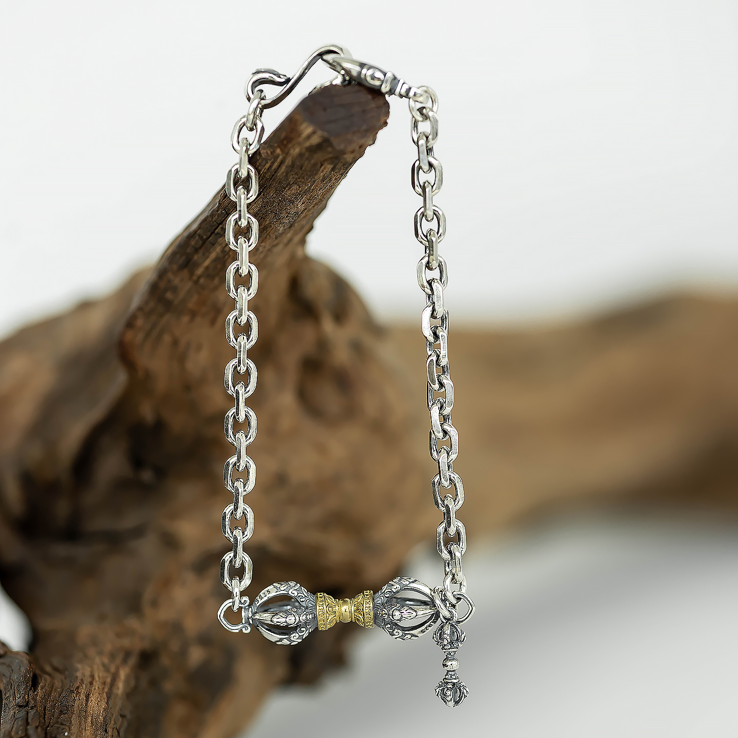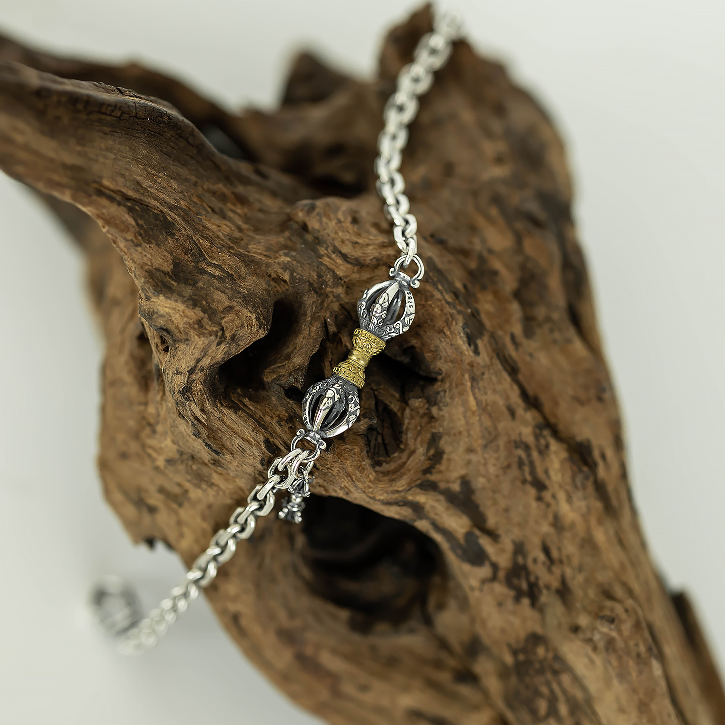 非相 纯银S925复古做旧金刚杵手链六字真言十字太角链重工男款
