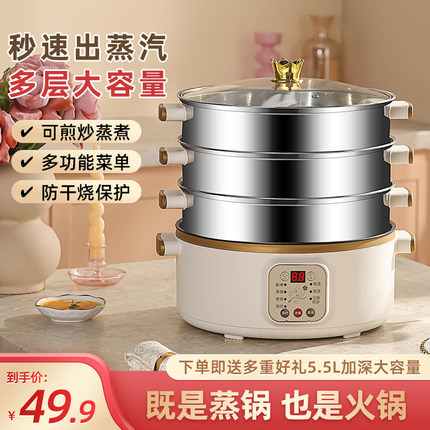 德国电蒸锅蒸煮炖锅一体大容量小型多功能家用三层预约定时电蒸笼
