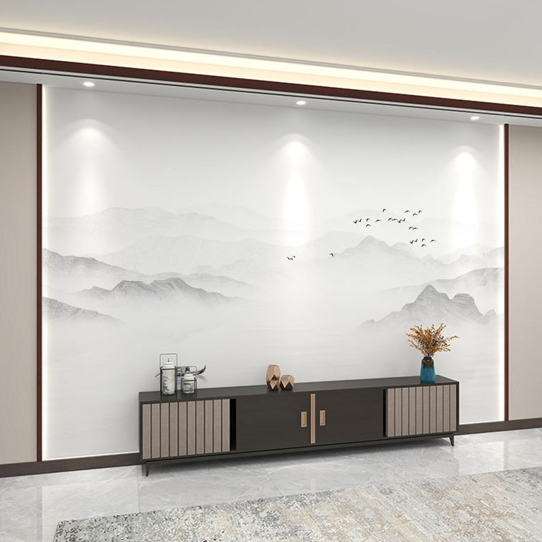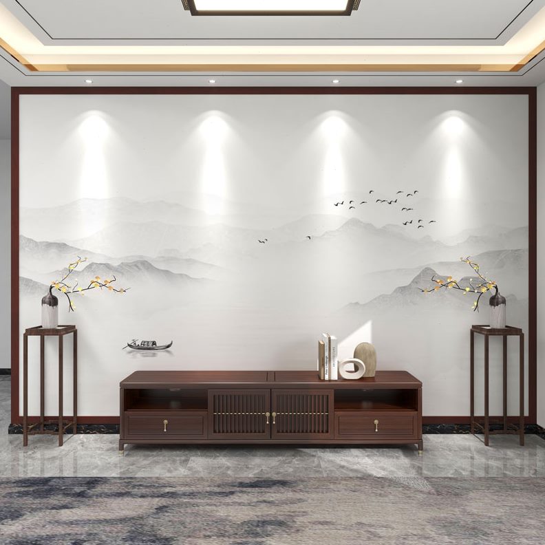 壁画客厅壁布新中式纸壁画水墨壁纸自粘沙发影视墙轻奢山水背景墙