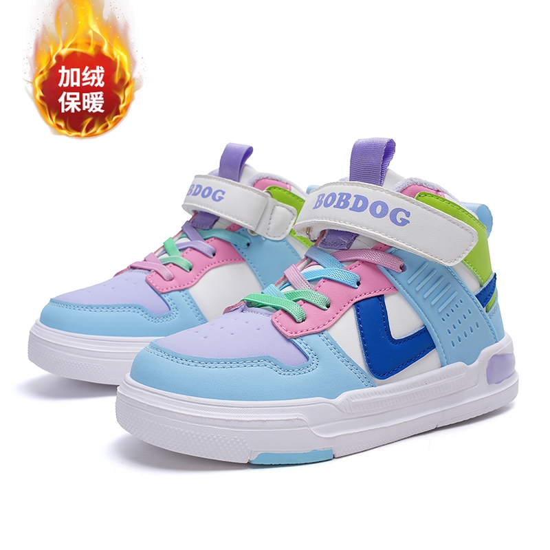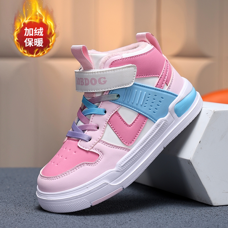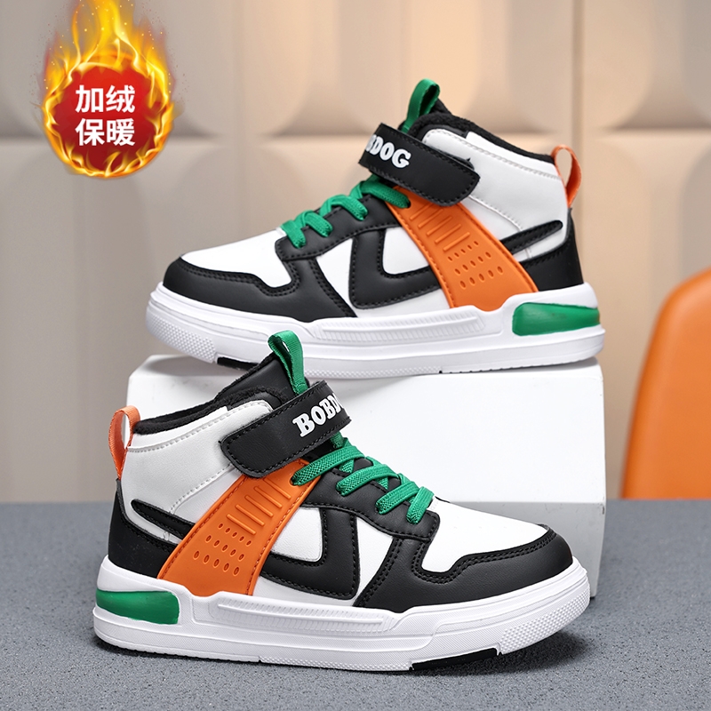 b巴布豆男童鞋2025加绒儿童鞋子运动鞋二棉保暖皮面鞋中大童板鞋