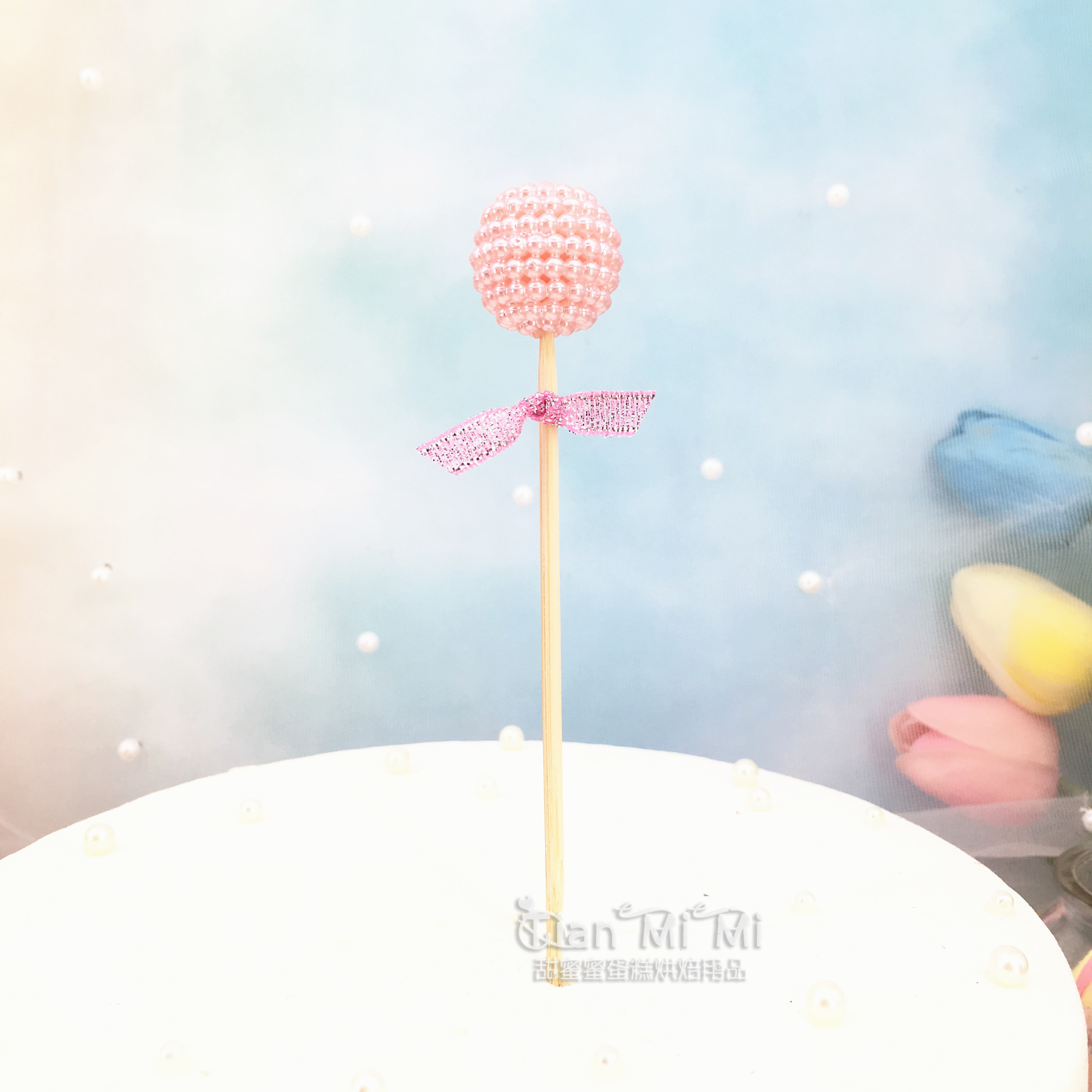 ins可爱风烘焙生日蛋糕装插牌小清新珍珠球球棒棒糖甜品台插件