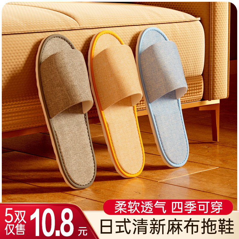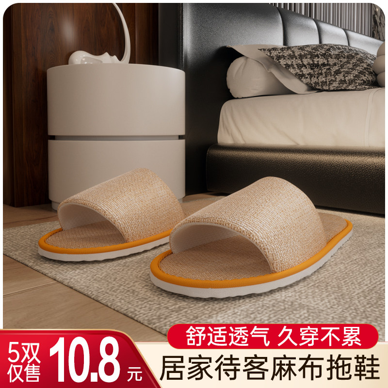 【5双】居家半包亚麻布一次性拖鞋居家待客酒店民宿加厚防滑露趾
