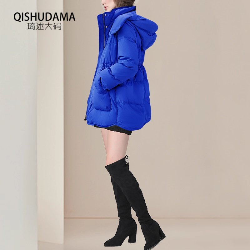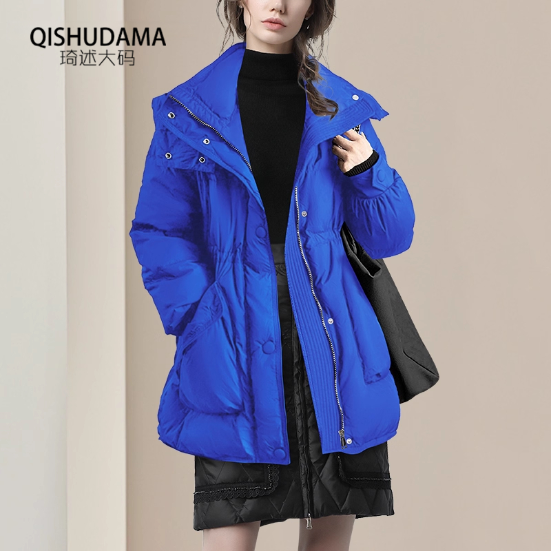 可定制2025秋冬羽绒服外套女宽松蓝色白鸭绒羽绒衣中长款保暖棉袄