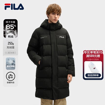 远红外发热FILA斐乐男士长款羽绒服2025冬季新款运动宽松保暖外套