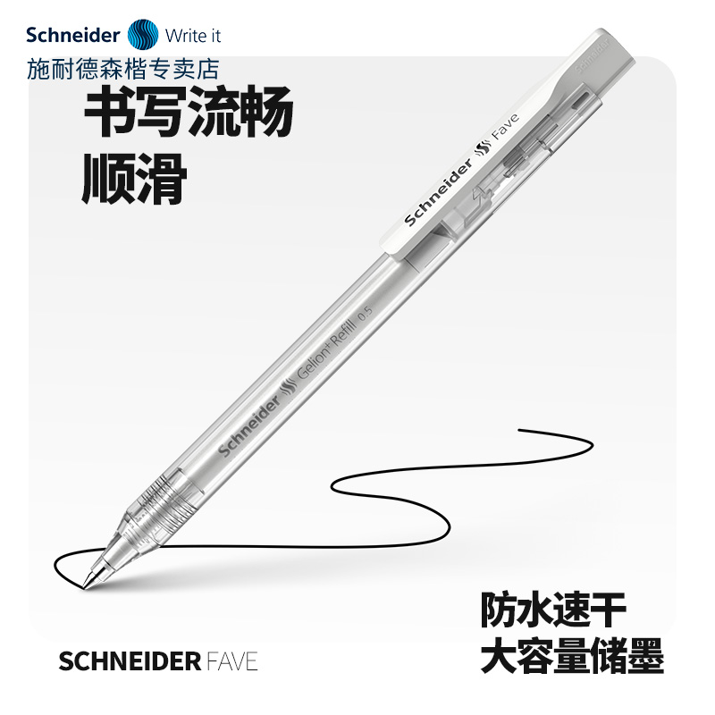 黑科技1秒速干防水德国进口施耐德中性笔学生刷题高考试专用菲尔FAVE高颜值按动黑色水笔可换欧标G2笔芯0.5mm