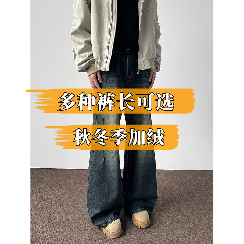复古蓝牛仔裤男高个子加长裤子115cm110秋冬季超长裤子青少年长裤
