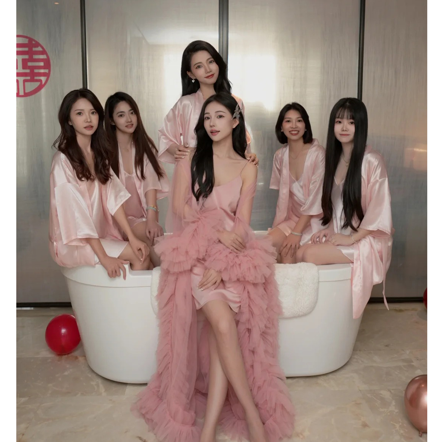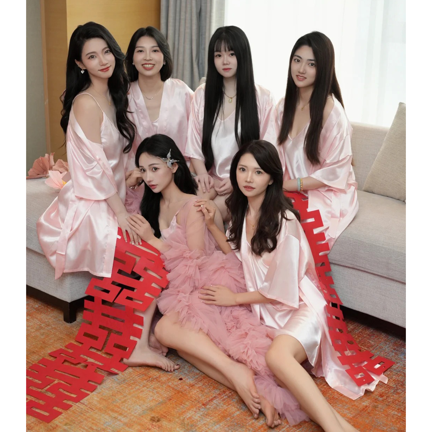 欢喜橙/婚礼晨袍女新娘伴娘团丝绸闺蜜结婚睡衣睡袍浴袍女伴手礼