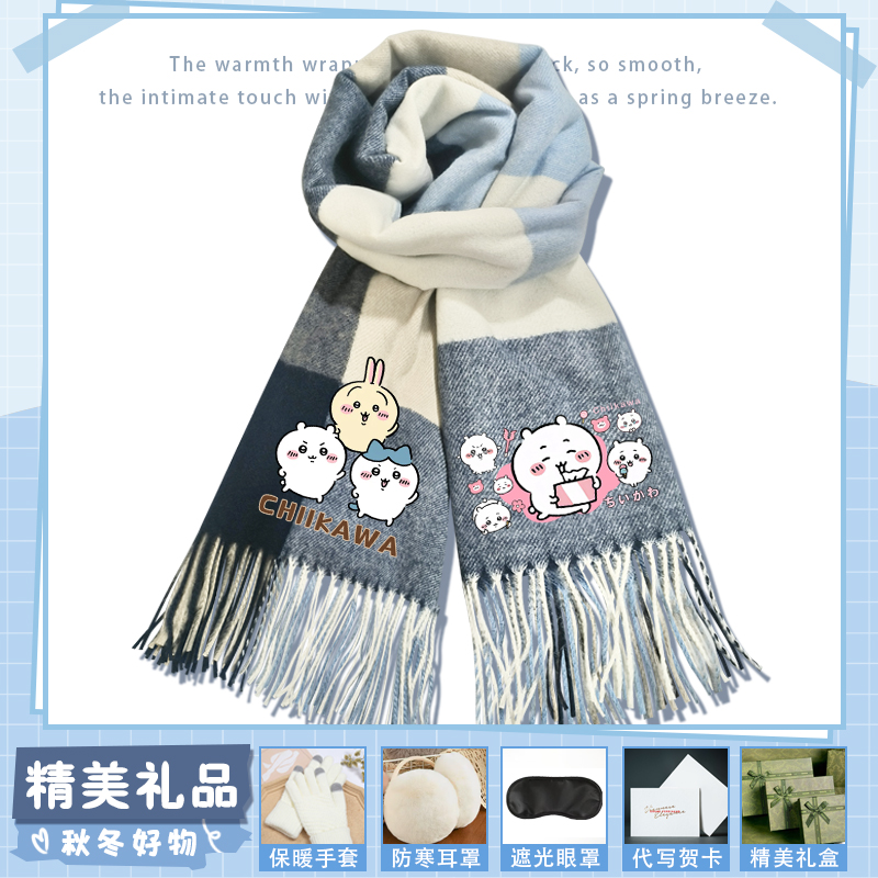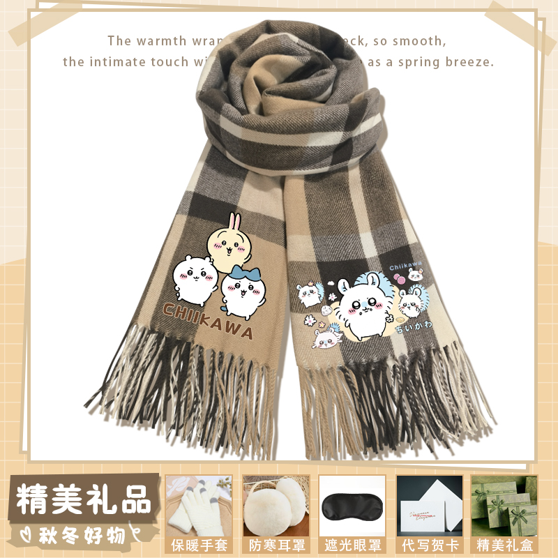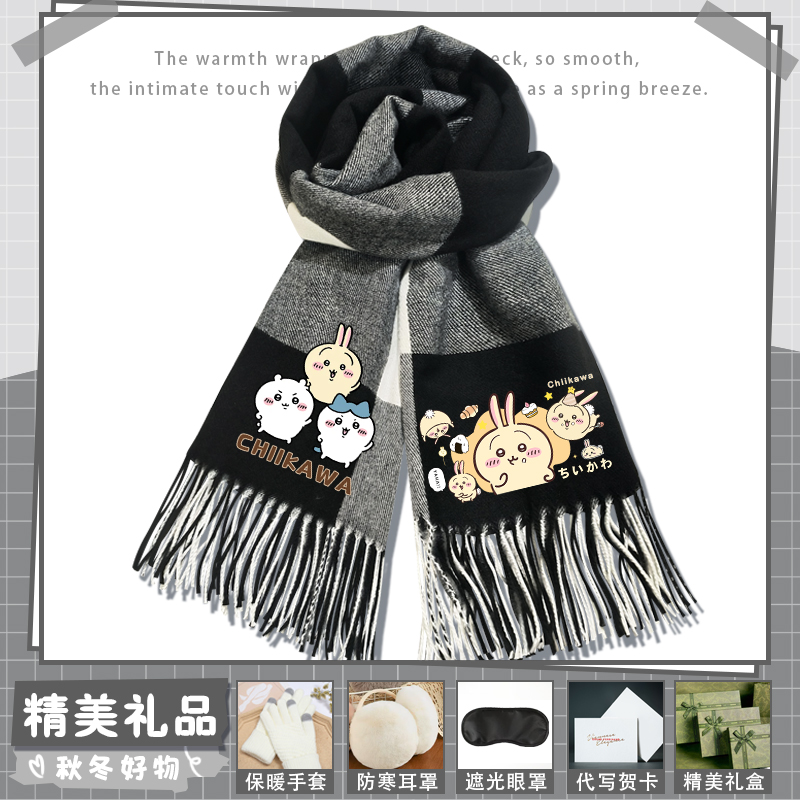 吉伊卡哇羊绒围巾秋冬季百搭乌萨奇小八围脖披肩两用女生送礼盒