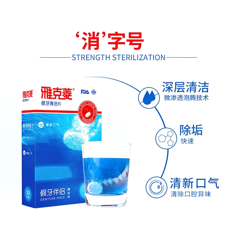 雅克菱假牙清洁片义齿清洗器牙套清洗剂液消毒泡腾片口腔护理