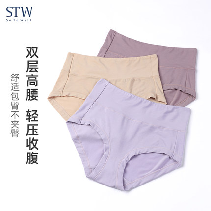 STW收腹女士内裤女莫代尔高腰产后大码性感提臀三角裤头透气底裤