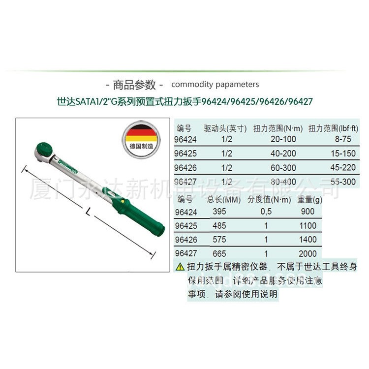 【含税】供应SATA世达1/2预置式扭力扳手96424/96425/96426/96427