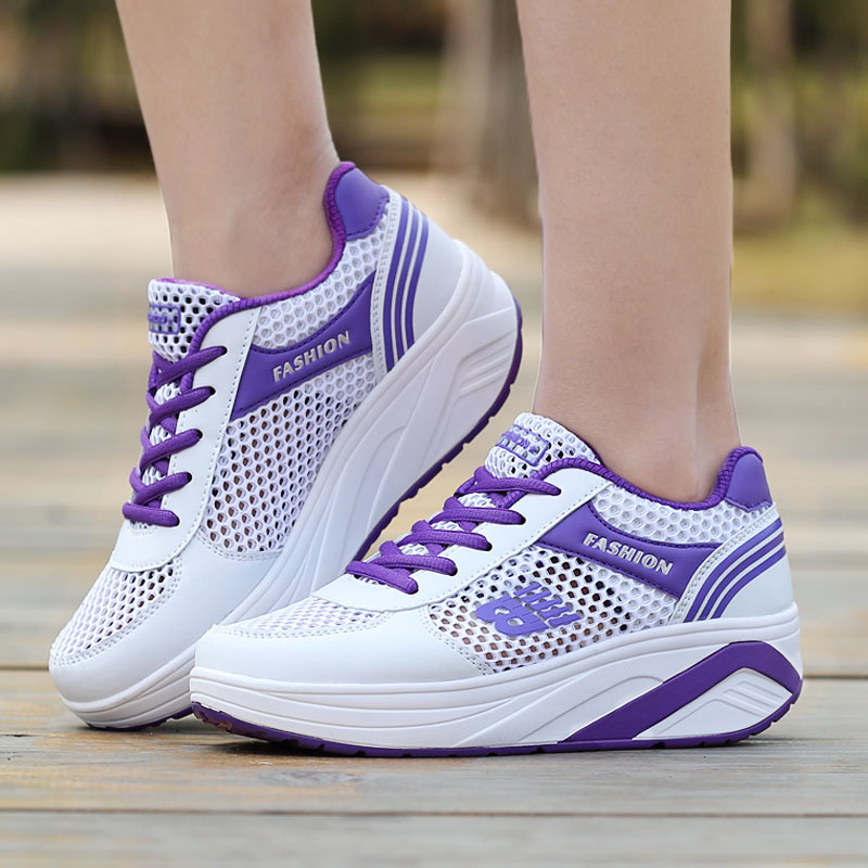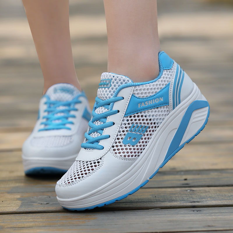 中国梦之队跳舞跳操鞋纯白色透气网面摇摇鞋女增高休闲运动鞋网鞋
