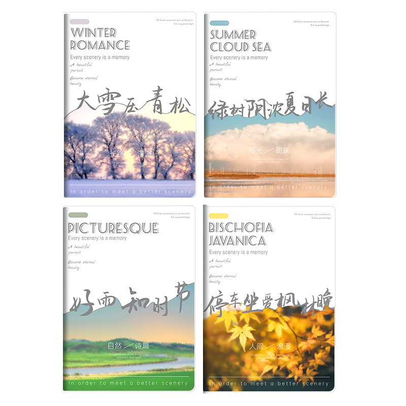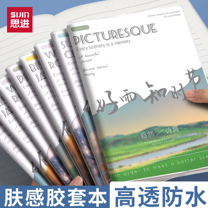 思进加厚肤感胶套本B5四季风景高颜值笔记本A5记事本B5横线日记本个性文艺清新简约手账作业本学生专用日记本