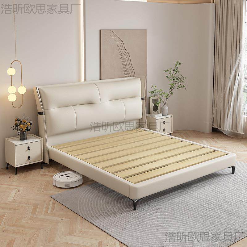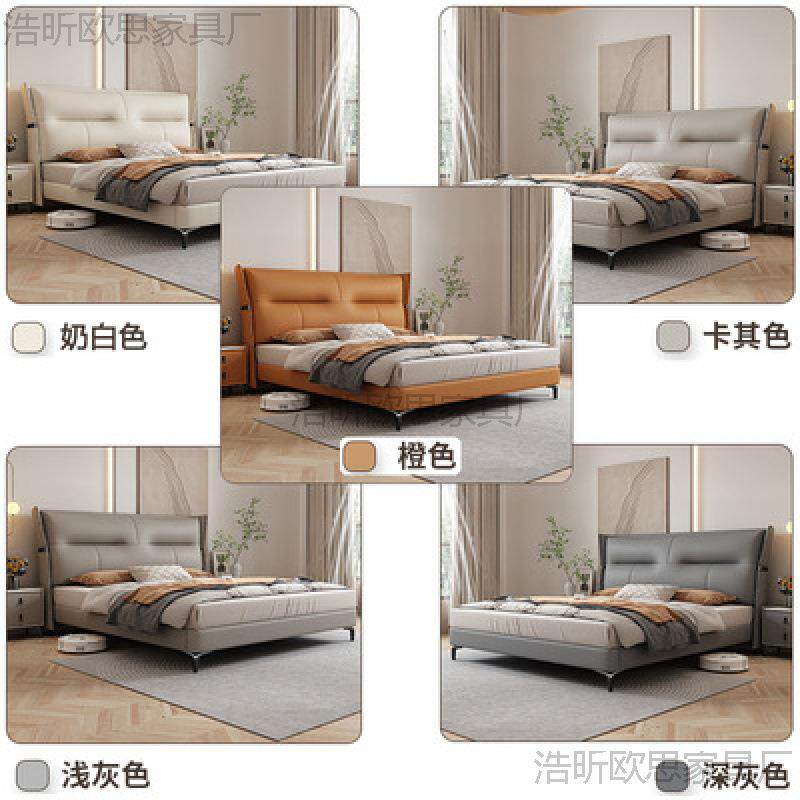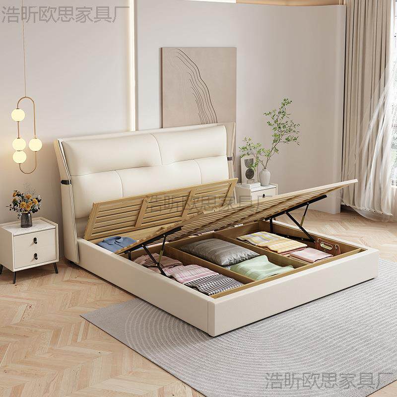 2023年新款主卧大床意式轻奢真皮床现代简约1米8双人储物软包婚床