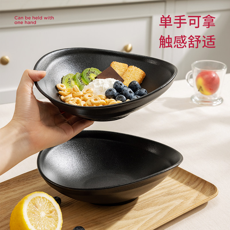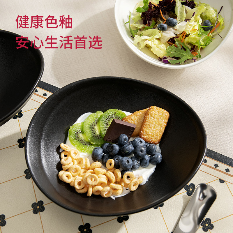 酸奶碗高颜值陶瓷餐具家用黑色高级感水果甜品沙拉燕麦早餐碗带勺