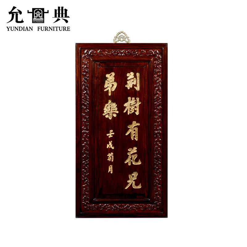 刺猬紫檀书法挂屏贴金字屏一对寓意家庭和睦生活美好允典红木家具