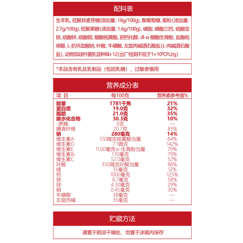 百年龙腾高钙羊奶粉益生元益生菌中老年女士成人