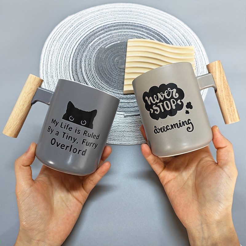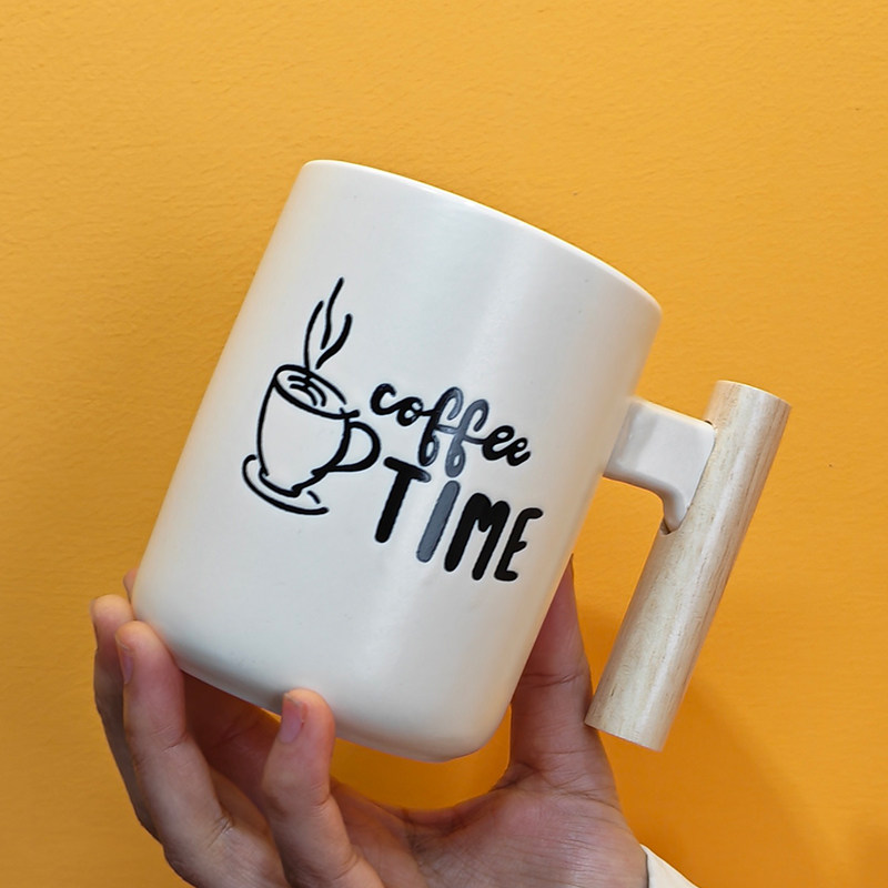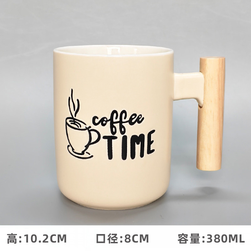 食魔师简约手写英文字母马克杯尾货清仓处理陶瓷木柄咖啡杯 380ML