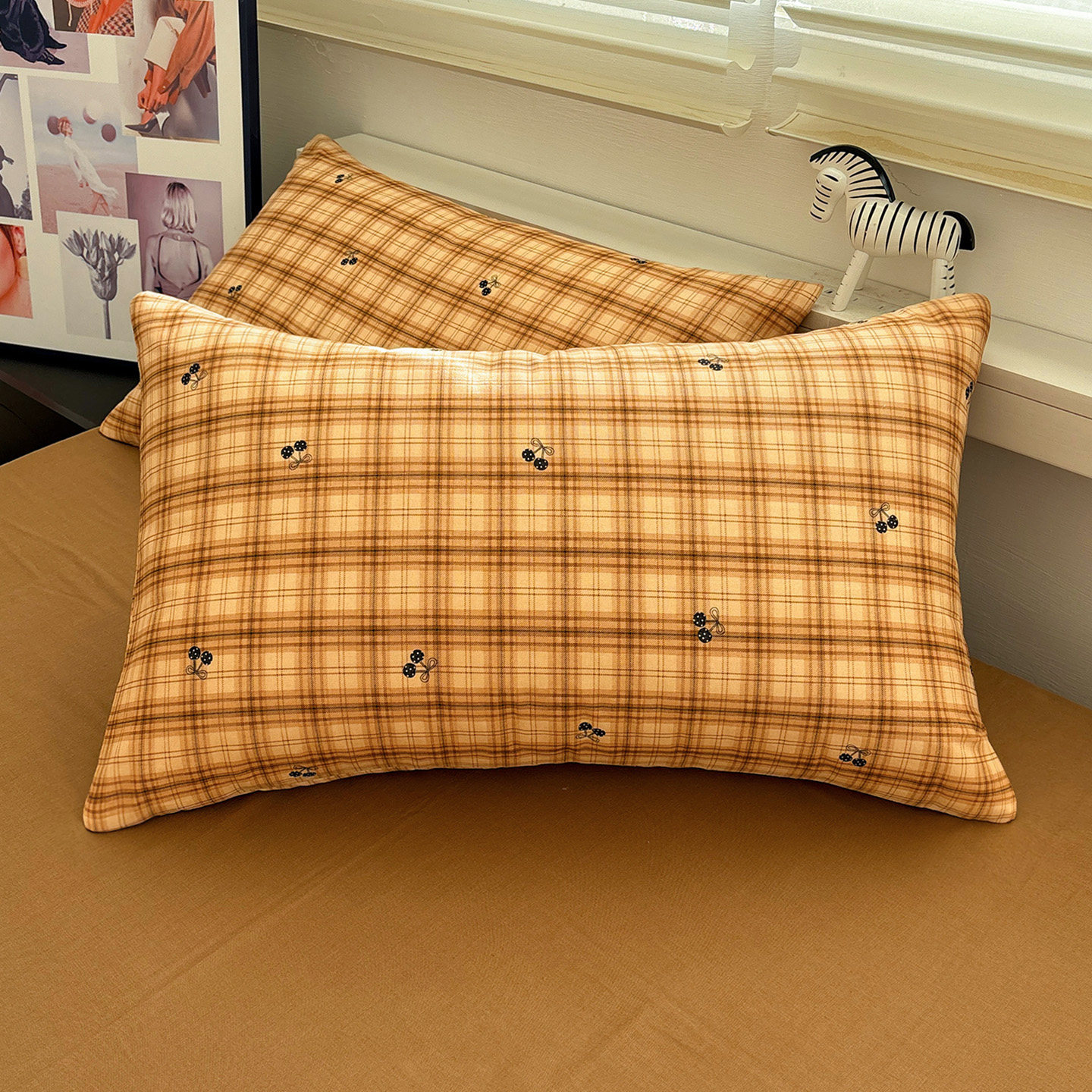 双层纱糖炒栗子全棉枕套一对装纯棉枕头套单个48x74cm枕芯内胆套