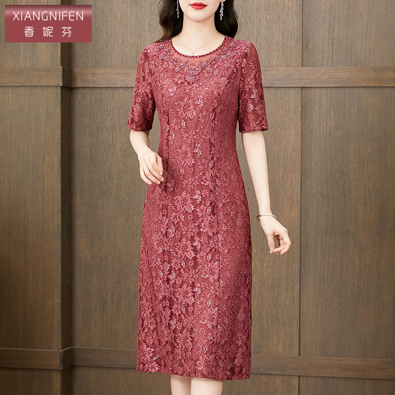 香妮芬气质温柔风中年妈妈连衣裙女2025新款夏季高贵阔太太蕾丝裙