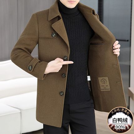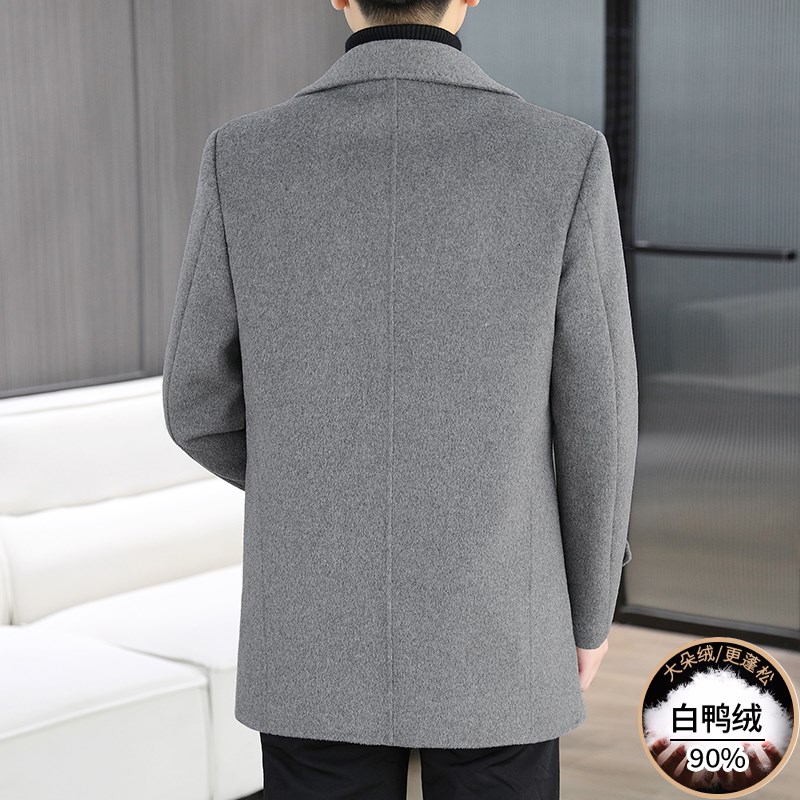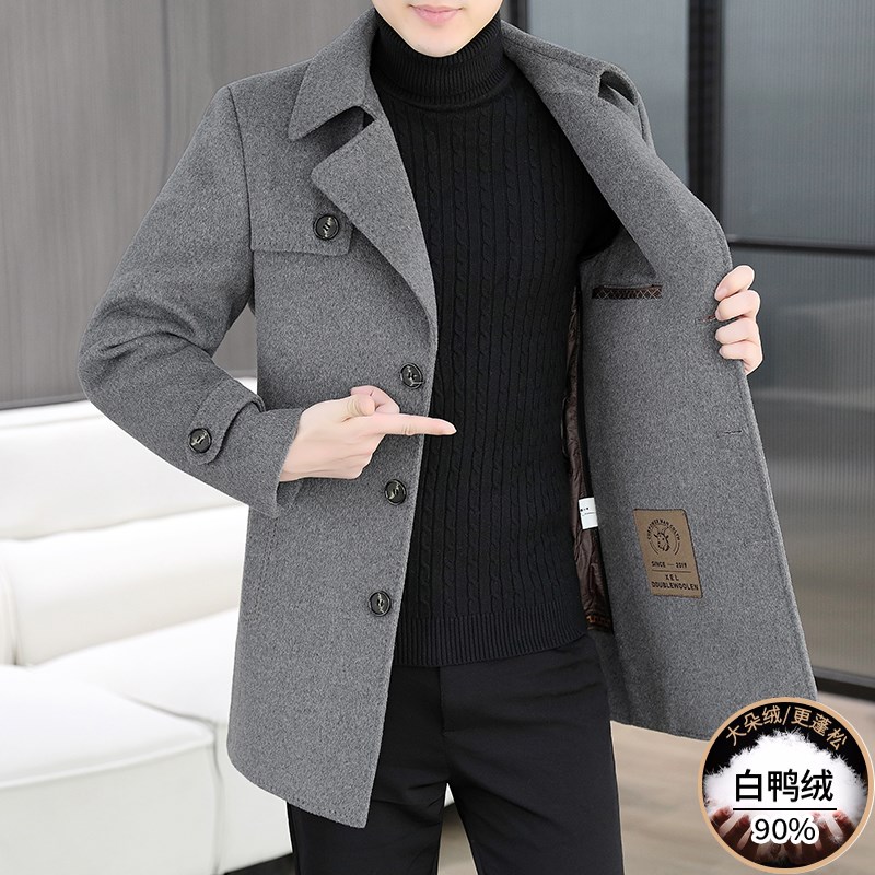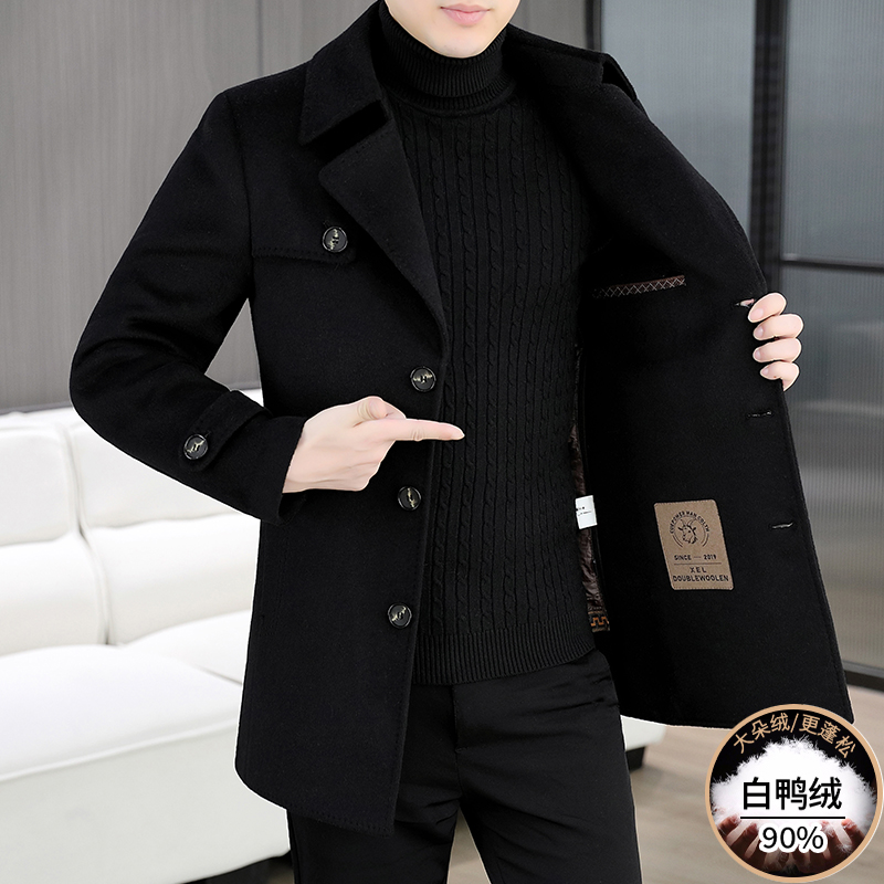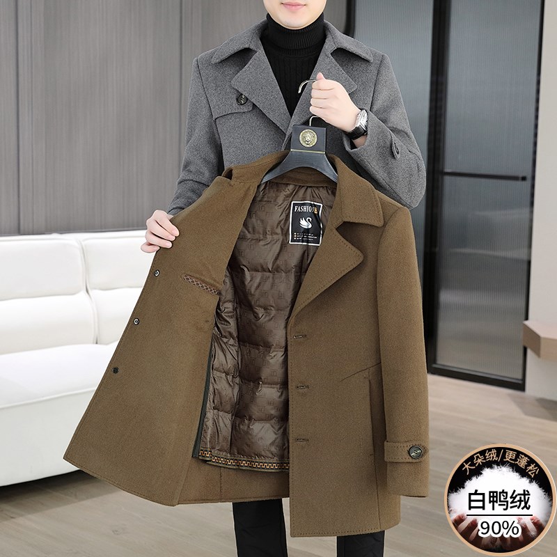 中长款羊毛大衣男士秋冬季加厚羽绒内胆非羊绒风衣高端双面呢外套