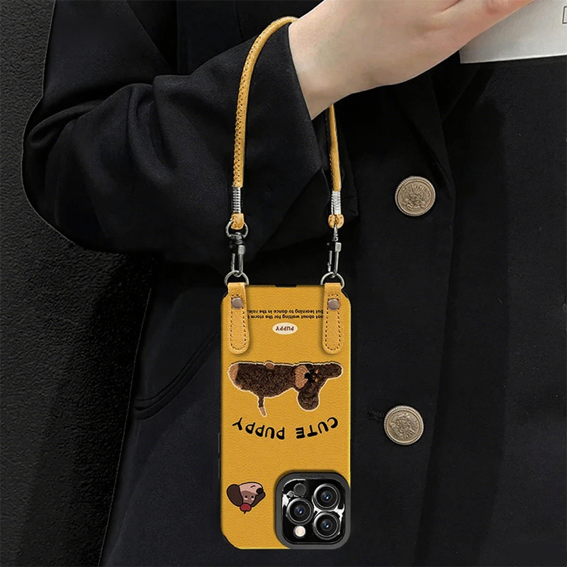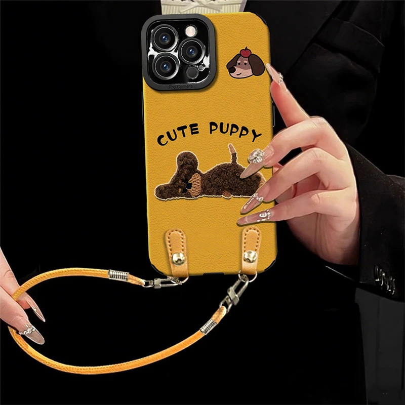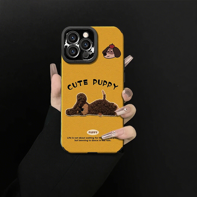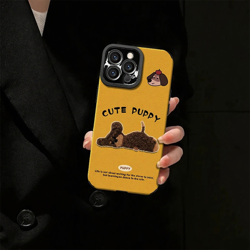 秋冬姜黄色刺绣小狗适用苹果17Pro手机壳iPhone15max12小米16华为mate80pura70k60reno14iqoo13荣耀300magic7