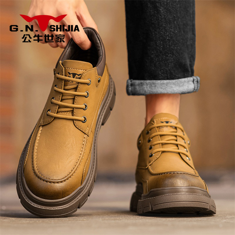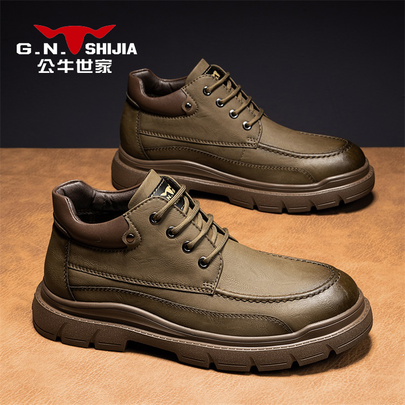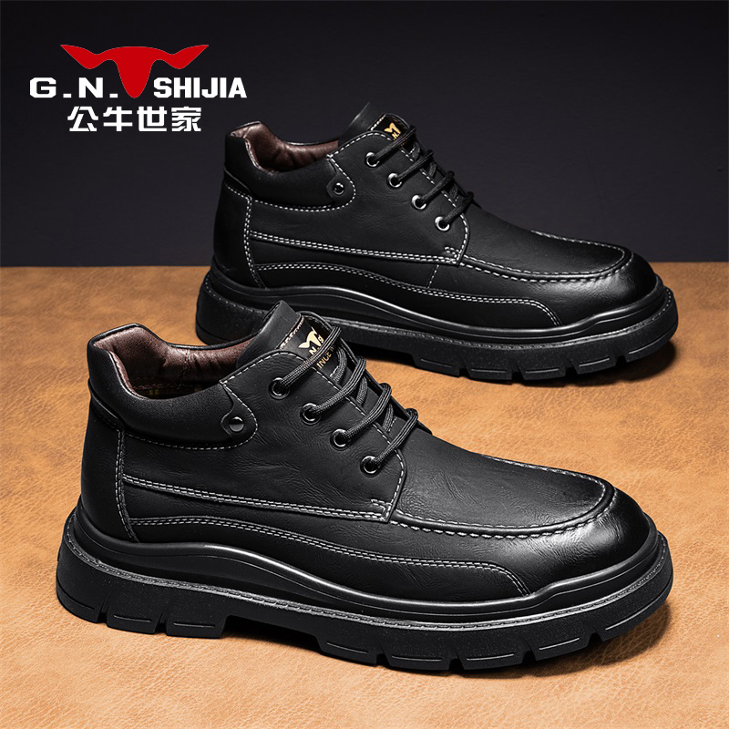 公牛世家马丁靴男款秋季厚底增高英伦工装靴子男舒适耐磨高帮皮鞋